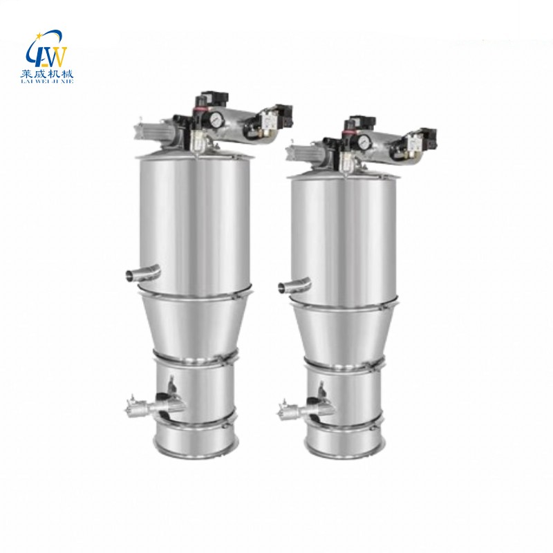 真空上料機利用漩渦氣泵抽氣,使吸料嘴進口處及整個系統處于一定的負壓狀態,粉粒料隨同外界空氣被吸入料嘴,形成料氣流,經過吸料管到達料斗,在料斗中進行氣、料分離。分離后的物料進入受料設備。送料——放料是通過氣動換向閥不斷地開、閉來完成的,而氣動換向閥的開閉是由控制面板來控制的。